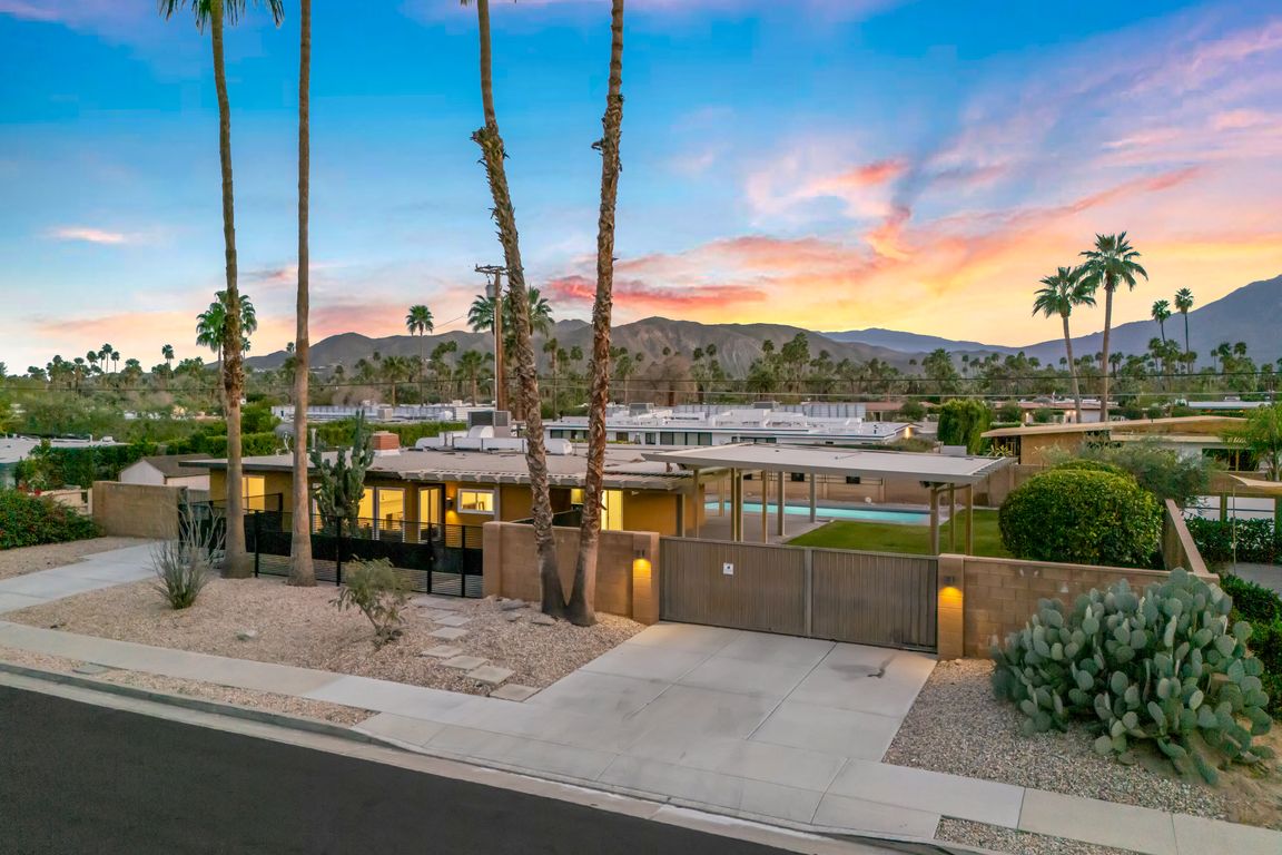 Nestled in historic Tahquitz River Estates, this 1950 single level home blends midcentury pedigree with contemporary luxury. Remodeled just three years ago, it now features marble floors flowing through open living spaces and a chef's kitchen outfitted with custom cabinetry, quartz counters and premium appliances. The property sits on fee land, ...