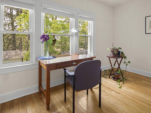 Sophisticated and freshly painted, this Belle Sherman 2 story craftsman has a new lower level full bath, an updated kitchen and great views just steps from the elementary school, Cornell and Mulholland Wildflower Preserve. Foster custom kitchen with stainless appliances and granite counters. Hardwood floors. Classic entry with mudroom  and closet, enjoy the cozy living room with new hearth around gas fireplace. Formal dining room is open to kitchen, plus windowed office overlooking sunny garden on first floor. Side porch for summer socials. Three bedrooms and full bath up, and on the lower level there is an additional guest/office suite with full bath and LVT floors that walks out to garden. Carport and parking off Water St. great fenced backyard with sun for gardening. Convenient to Cornell, Collegetown, downtown Ithaca and Ithaca College, TCAT and just one block from 6 Mile Creek natural area.