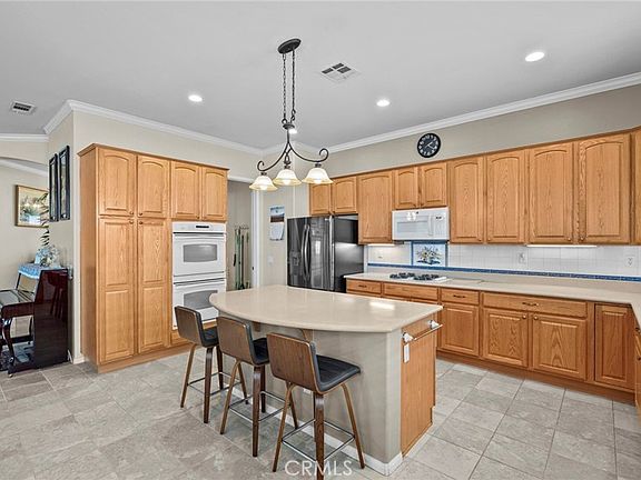 Step into this exquisite home. This house boasts a stunning kitchen. As you explore the house, you'll find a relaxing huge backyard with a exquisite Golf Course fascinating view, perfect for unwinding after a long day. Additionally, 2 beautiful bedrooms offering you the ultimate indulgence and an elegant den/office that if needed, it could be potentially be a third bedroom. It comes with AC/Heater system, so whether is cold or hot outside you and your family will just enjoy the perfect temperature in your home. The entire property creates a sense of timeless elegance. The living room is spacious with a luxurious fireplace. The kitchen is adorned with tile. This home gives you a relaxing feel with an elegant back covered patio which is perfect for enjoying the outdoors in any weather. One of the most enchanting aspects of this home is its magnificent mountain views, creating a serene backdrop to your everyday life. Community features Tennis and Pickleball courts, as well as a Bocce Ball court, pool area, a billiards room, a library, and a fitness center. This peaceful location truly makes this house a haven. The property also comes with a 2-car garage, providing ample parking outside of garage for up to 4 more cars besides the 2-car garage with a total parking space for up to 6 cars and storage space. One of the best features of this property is its prime location – and you'll be just a stone's throw away from schools, shopping centers, restaurants, and Convenience is at your fingertips. A gated community for active 55+. Upgrades include elegant crown molding throughout. It comes with newer sprinkler system. Exterior of the home was recently painted. There are too many amenities in Solera Oak Valley Greens to list, "Resort Style" SoleraOVG.com. Solera is located just off I 10 with only approximate 30 minutes west of Palm Springs. No solar panel installed on this exquisite home. Don't miss the opportunity to call this beautiful house your home. With its impressive features and unbeatable location, it's more than a home – it's a lifestyle you have been waiting for"