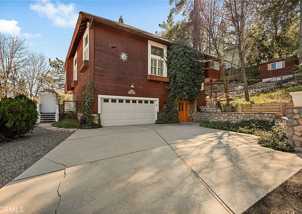 An exceptional mountain home offering sought-after lake rights to beautiful Lake Arrowhead, this spacious residence delivers a rare and valuable lifestyle opportunity. Set on a generous parcel with charming curb appeal, the home welcomes you with a well-maintained exterior and level-entry parking into a 2-car attached garage with direct access into the home—a highly desirable feature for mountain living. Additional parking across the street provides ample space for a boat, RV, or outdoor toys. Inside, expansive living spaces flow seamlessly into comfortable bedrooms and flexible living areas, including a mother-in-law quarter complete with a built-in stove, fridge, and microwave, ideal for guests, extended family, or potential rental income. The main living area features high ceilings and an open layout, complemented by a fully enclosed sunroom that offers versatile year-round enjoyment. Outdoors, a large patio invites al fresco dining and gatherings while you take in the peaceful setting and peek-a-boo lake views. Additional highlights include a finished exterior shed with potential for a future bathroom, and a spacious, landscaped yard offering room for play, gardening, or future enhancements. Located just minutes from local trails, lake access points, and all the charm of Lake Arrowhead mountain living, this home is perfectly suited as a full-time residence, vacation retreat, or investment opportunity.