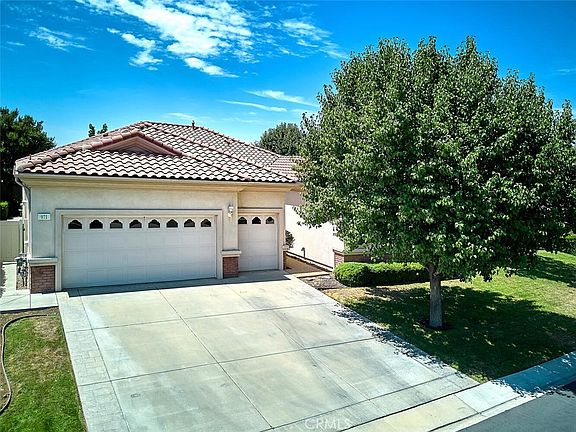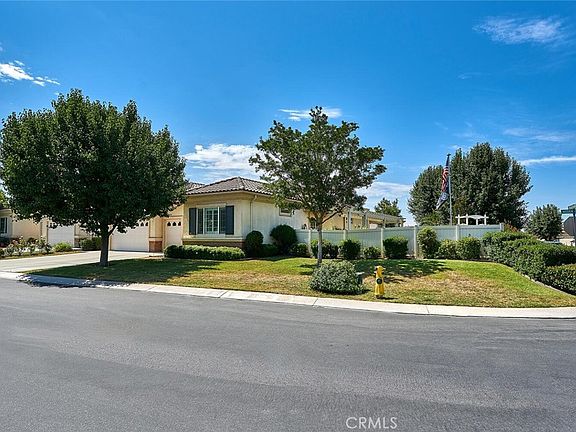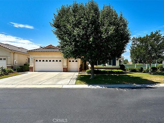 PRICED TO SELL QUICKLY! WALKING DISTANCE TO THE CLUBHOUSE! MOUNTAIN VIEWS FROM THE PATIO! This corner-lot Emerald model in Solera, a 55+ community in Beaumont has a patio that wraps around much of the home so that you can really enjoy the outdoors! Two bedrooms, 2.5 baths, office/den, 2 car garage and a golf cart garage. Plantation shutters and a door in the office to the outside are among the upgrades. Basic TV cable and internet are paid through HOA. Solera is a guard-gated community with a great gym, billiards, meeting rooms, bocce ball court, tennis courts and a heated pool and spa. Solera is located close to Palm Springs, golf course. Welcome to the good life!