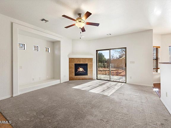 Built in 2004, this delightful 1,378 sq ft home features 2 bedrooms/2 baths plus a den/office. The office was previously a bedroom but the closet was removed, it could easily be reconstructed. The kitchen is spacious with granite countertops and warm wood cabinets. The dining nook, with bay windows, fills the room with natural light. The cozy living room includes a gas fireplace and a sliding door that leads to a covered patio, ideal for enjoying the outdoors. The master bath offers dual sinks, a granite countertop, a makeup vanity area, and a walk-in closet. Outside, the fully landscaped yard is adorned with mature trees, and the large covered patio is perfect for relaxing. This home is a must-see! UPDATE 1-10-25: The home has been updated with fresh interior paint and a professional deep clean, making it perfectly ready for your clients!