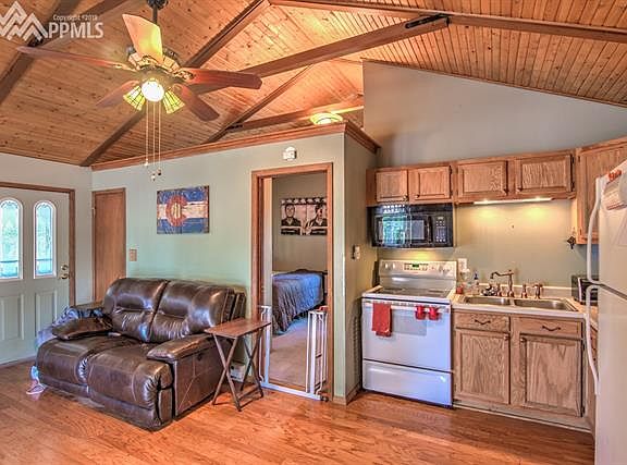 Finally a really nice one bedroom, log sided cabin in move in condition. Over 600 sq feet of deck space on this home. Nice views toward the westerly mountains. Lots of upgrading and remodeling has been done since this home was built. Knotty pine tongue and grove ceilings that are vaulted. Wood laminate flooring in the living areas, vinyl double pane windows. Home is already piped for wood stove if wanted. Stack-able washer and dryer are included. Extra large 5 foot tall dog run has been added to the home. Hot tub is a high end Hot Springs spa. Circular driveway makes for easy access. Good fishing in the community lakes 1 mile from home with picnic area. Large mature pines and fur. This is an excellent home for part time, full time or VRBO residency.