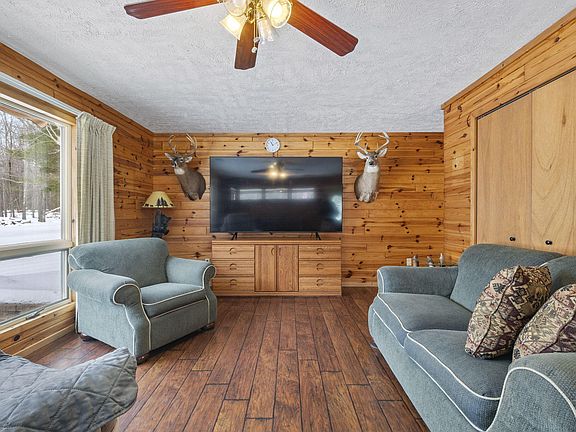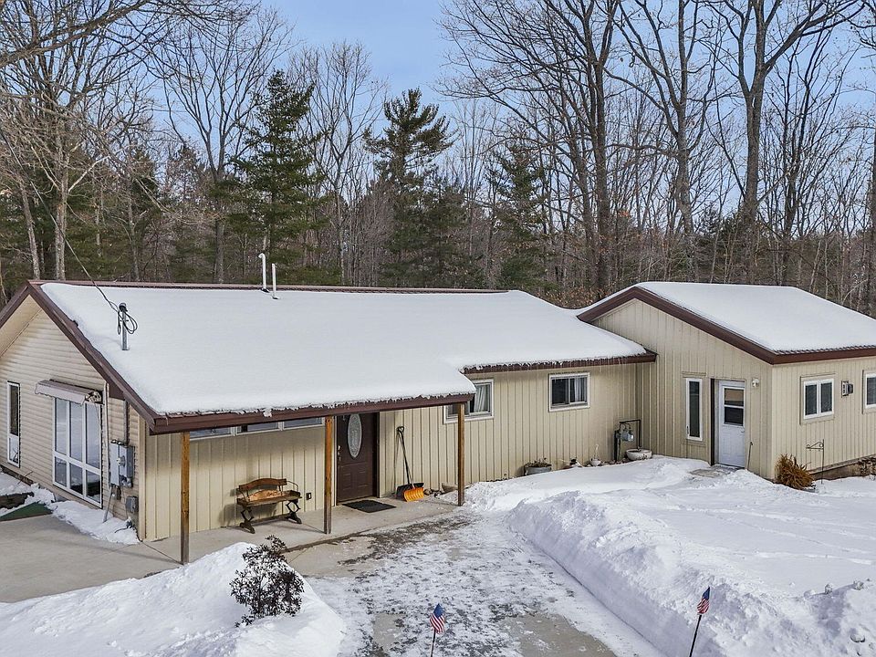 This 3 bedroom, 2 bath, single story home with a steel roof, steel siding and two pole barns sits on 15+/- acres of land with oaks and pines and is located a short walking distance from Mullett Lake and Inland Waterway! This home is CLEAN from top to bottom and move-in ready! From the spacious, private, owner's suite with a gas stove and split bathroom and walk in shower to the wrap around concrete patio with an overhang and roll out awning, this home brings comfort and joy inside and out! Bring your Campers, Boats and Off-Road Toys, there is plenty of room for storage! One pole barn is 32x64 equipped with electricity and the second pole barn is 22x30 that is currently converted into a warm, functioning man cave (electric, woodstove, insulation, steel interior). With just the right amount of acreage, there is plenty of room for a garden, 4-H animals, a hobby farm and/or hunting. There is cold storage under the home, walk in closet in the owner's suite, new appliances, wood plank tile flooring, first floor laundry and more! 5 minutes to Indian River, 15 minutes to Cheboygan, 20 minutes to Gaylord and 25 minutes to Petoskey, Boyne Highlands and Nubs Nob