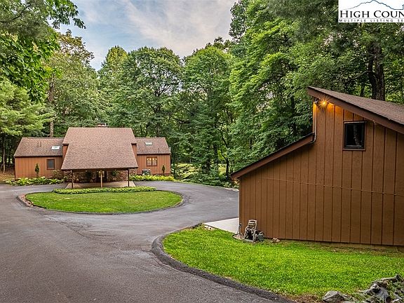 Spacious, well-maintained mountain home on # 7 fairway of High Meadows Golf and Country Club. The wooded 1.2 acre lot provides a peaceful and private setting. The spacious family room with stone fireplace is a perfect gathering place. You'll love entertaining in the formal dining room or outside on the large, private deck. The kitchen features quartz countertops and stainless steel appliances. The large primary bedroom with ensuite bath is on the main level of the home. Guests will enjoy the two bedrooms with ensuite baths and separate living area and game room on the lower level. A detached 2-car garage with a work shop/storage area upstairs makes this an ideal full-time residence or vacation home. This Roaring Gap NC location provides just the right balance of seclusion and convenience. Schedule your tour today! Home qualifies for a reduced initiation fee to HM if you join HMGCC within 60 days after closing. Improvements made to the home are in the supplements.