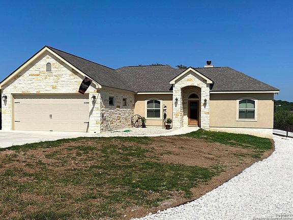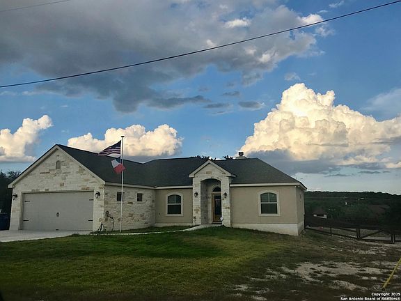 4 bed/2 bath 1842sf Custom Home with a 1200sf metal building. Metal building consists of a 24'x36' enclosed shop with a 12'x36' carport, equipped with electrical outlets and LED lighting. Great space for boat storage, shop and/or creative space. House sits on a 1/2 acre property in a quiet cul-de-sac with a fenced backyard, RV parking and irrigation system. Back porch has a deck with french doors off the living and dining room areas. Just 10 minutes from pristine Canyon Lake, local shopping and restaurants. Interior finishes include ceiling fans,LED recessed lighting, wood burning fireplace, travertine tile, stain grade cabinets, stainless steel electric appliances, water softener, garage mini split and more! Situated in Rocky Creek Ranch subdivision. Amenities include a pool, community park, clubhouse, volleyball court and seasonal creek. Motivated sellers!