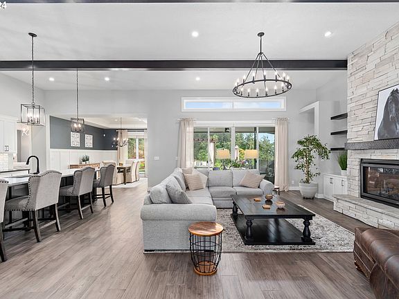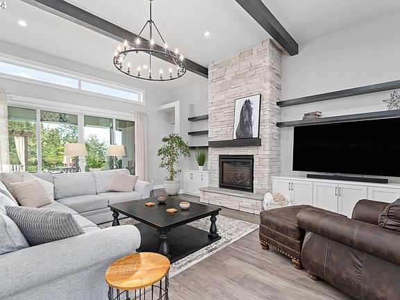 One-of-a-Kind Modern Craftsman in Mountaingate! With an ideal floor plan & high-end finishes, this single-story home w/ clean lines, 12-foot ceilings & sweeping valley views will impress even the most discerning buyers. The fully-equipped gourmet kitchen w/ gas range, double ovens, coffee bar, pantry, massive granite slab island and black stainless KitchenAid appliance suite opens to the light & airy great room w/ stacked stone gas fireplace insert & double sliders leading to the covered patio w/ wood-lined ceiling - perfect for entertaining & maximizing indoor/outdoor living. The primary bedroom suite is a luxurious retreat with spacious bathroom, dual vanity, tile shower and dream-worthy walk-in closet. The beautifully landscaped, sunny yard offers a private pergola w/ built-in seating, gas fire pit and new wrought iron fencing that complements the breathtaking view of the Coburg Hills. Other features include engineered hardwood floors, 3-car garage w/ utility sink & huge attic storage, RV parking, gas furnace & water heater, central vacuum, security system, custom roller shades, and so much more. But words and even photos truly don't do this home justice. Please ask your agent for a private tour today!