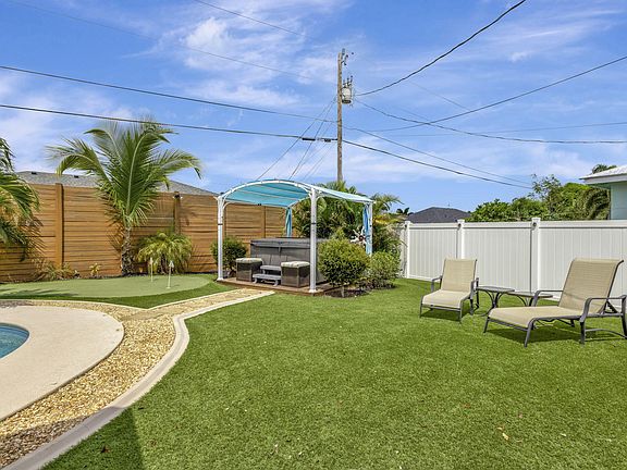 Lovely 4 BR/2BA/POOL home with privacy fenced yard! This home is in move in condition and ready for you to enjoy your Florida lifestyle! Open floor plan features a spacious kitchen with island, espresso kitchen cabinets and stainless appliances. This home also includes solar panels, which means great savings on your utility bills! But really makes this home shine is its back yard oasis! Relax on your spacious back yard covered patio, or plan a BBQ on your detached deck with cover as well!!n The sparkling pool with stonework and waterfall is ready for you to enjoy! Or perhaps relax on your back lawn or practice your golf swing on the putting green! No matter how you choose to relax, your back yard is super private and fully fenced in. Hot Tub, negotiable!