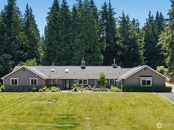 Exquisite 5.4-acre estate just minutes from downtown Langley. Stunning remodeled rambler designed for modern indoor/outdoor living. Contemporary design features pecan hardwoods, custom cabinetry & quartz counters throughout. Open concept living offers a seamless, flowing floorplan, connecting kitchen, living, dining & family room to the outdoor spaces. Three generous bedrooms & an idyllic 429 sq ft hot tub/spa retreat. The lot is an entertainer, gardener or hobbyist's dream w spacious patio, covered outdoor kitchen & bar, stage style decking, fenced in rear yard as well as fruit trees, raised beds, meadow, chicken coop, 1152 sq ft workshop & charming playhouse. Preinspected, newer roof & septic, low-e windows make it move in ready!