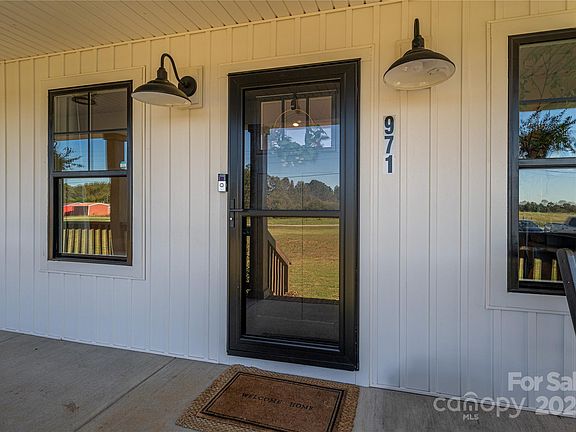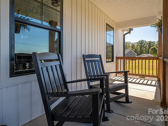 The TRUE modern farmhouse you have been waiting to hit the market is finally here! No detail has been spared from the white outside board and batten, wood beam accents, sprawling front porch and white/black scheme that follows through to the inside right down to the farmhouse sink, white shaker cabinets, barn door accents and white washed brick backsplash. The house is made for entertaining with the split floor plan, backyard oasis including a fire pit, shed and decorative lighting, open concept kitchen/living/dining and wide front porch. You will find comfortable carpeting in the bedrooms and LVP in the common areas. The backyard backs up to a horse farm and a bulb garden for cut flowers was recently planted for those flower lovers. Don't let the square footage fool you this place feels very spacious compliments of the vaulted ceilings and open plan! Practically brand new this one will not disappoint!