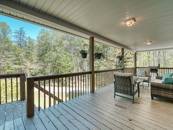 Move in ready one level living with no step entry, full finished basement Mother-in-Law suite. 3 bedrooms on the main level with open concept living/dining/kitchen. Step out to either the large covered 10x33 porch or enjoy the Screened porch on the other side of the home. Recent upgrades include entire main floor w/Luxuary Vinyl, entire interior painted, new SS Refrigerator & washer/dryer. Lower level is brand new with kitchen, third full bath & bedroom and living room. 2nd Laundry hookup Could make great rental income for someone with separate entrance if needed. Huge Laundry room, oversized garage with workshop area. This home includes the extra lot next door that has been cleared for privacy on almost 2 acres. Beautiful Trackrock area of Blairsville, easy year round access and minutes to Blairsville & Young Harris. New gutter guards and low maintenance yard. Don't miss this Immaculate home!