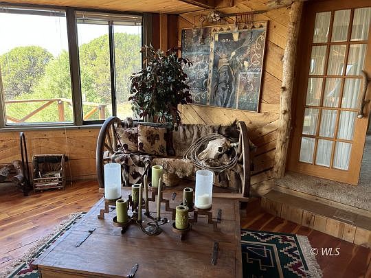 Idyllic Family Lodge/ Cabin. Marvelous cabin for you and your family to enjoy. Big enough for the whole family with a total area of over 2000 SF. Plus it is TOTALLY FURNISHED and equipped. Enjoy panoramic views of the Sangre de Cristo Mtns, unobstructed and breathtaking. The wraparound deck is ideal for taking in the sights, sounds and smells of the mountains. Entering the great room, with windows to the 2-story ceiling your eyes immediately go to the unique circular fireplace. The room is richly appointed with comfortable lodge furniture and some antiques. At the back of the great room is the kitchen with lots of storage. The Master Bdrm is on the main level with a Bath. On the 2nd level find 2 sleeping rooms with doors and 2 additional sleeping areas. In front of the front windows is a game area. There are plenty of games and books for down time. Outside there is outbuilding for toys and equipment. The cabin features end of the road privacy. It is somewhat remote, the 3-season access is best with all-wheel or 4-wheel drive. MULTIPLE OFFERS RECEIVED. OFFER DEADINE EXTENED UNTIL 9/12 AT 5:00. RESPONSE BY TUESDAY 9/13 AT 5:00. SUBMIT HIGHEST AND BEST OFFER. NO ESCALATION CLAUSES.