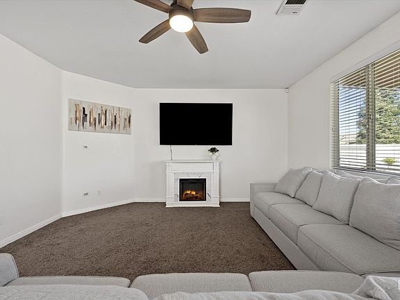 The perfect Bridgeton home in a highly desirable school district. You will appreciate this clean, well maintained split wing floor plan. The great room is perfect for entertaining with large sliding glass doors & shutters to the covered patio. The kitchen has a nice island, large pantry, stainless steel double ovens and a gas stove for those who love to cook! Wing one has a spacious master suite, walk-in closet, separate shower, relaxing bathtub & dual vanity. Wing two has two good sized bedrooms, a bathroom with shower/tub combo and an overhead window for natural lighting. The large lot has partial block wall fencing and plenty of room for RV parking, shop, pool, or ADU. Endless possibilities with this large lot!