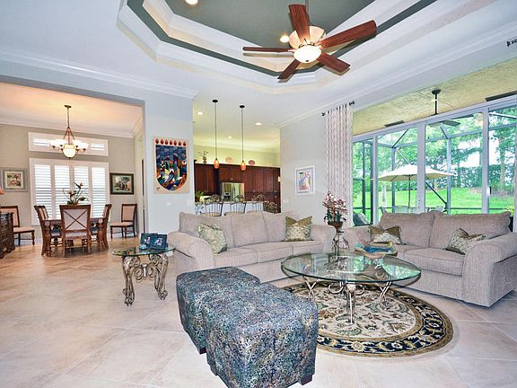 Beautiful Alexandra model with approximately $70,000 in upgrades featuring a magnificent extended screened patio with Travertine marble, screened entry and a private yard. Interior upgrades include neutral 24-inch tile on the diagonal, plantation shutters, crown molding, upgraded kitchen and baths, California-style closets and much more. Please call for a full list of upgrades. Valencia Reserve is a top 55+ community with tons of amenities. HOA fees now include cable, phone and internet and credit at the cafe.