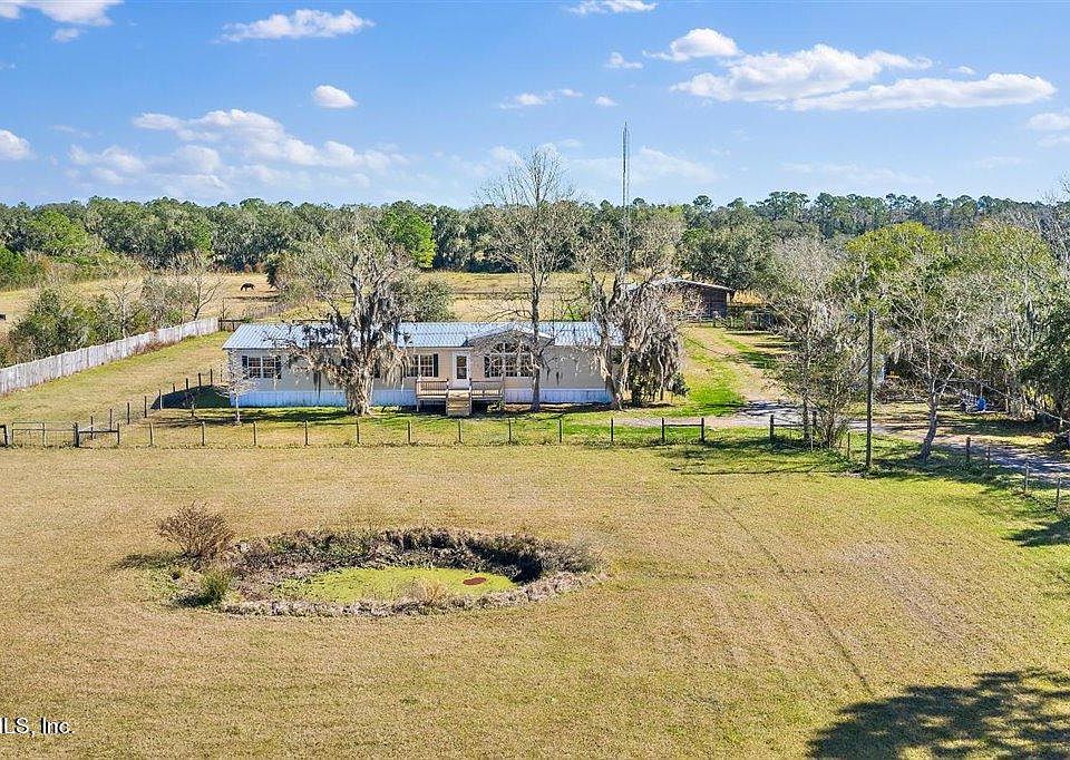 Fabulous Acreage property in St Johns County! This lovely 5 acre ranch includes a 2356 SF home, a 5 stall barn with tack room and hay loft, 5 fenced pastures, and an arena. It is perfect for the equestrian, hobby farmer, or a family looking for a roomy property for their family and all their toys. You will appreciate the great room with a stone fireplace and built in cabinetry. The home also offers a deck for enjoying country breezes and barbecues, a spacious kitchen and dining area, a large owners suite with en-suite bath which includes a shower, garden tub and his and her sinks. The home is graced with lots of windows offering lots of natural light making for a bright and cheery home. The vaulted ceilings also give this home a great feel.