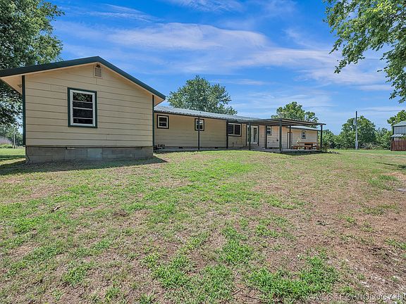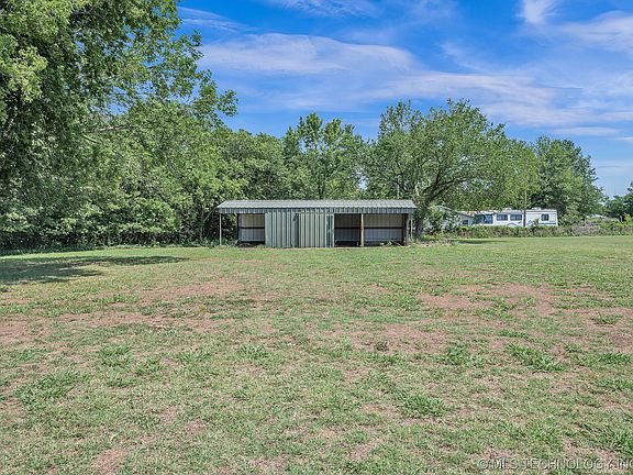 4 beds, 3 full baths, indoor & outdoor safe rooms. 30x50 shop that comes with air hose attachments, winch system in ceiling, 100amp electric panel, vented for wood burning stove, plumbed for bathroom, 2 ext water spigots, enclosed climate control rooms, 2 double, insulated doors for shop access, work benches stay. Loafing shed has electric & water. RV pad w/ 30 amp service. Exterior pavilion, gas grill hook up, concrete pic-nic table. 3 hot water tanks. Stick built frame, crawl space, metal roof. Real property according to the abstract. Bring your chickens & horses! Plenty of room to park your boat or rv. Oologah schools.