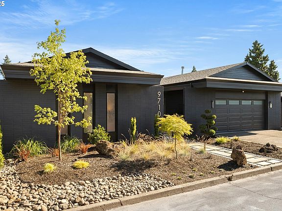 Iconic Mid-Century Modern Carriage House with courtyard in Vista Hills. This home has two bedroom suites + Family room and sunken Living Room with Wall of Windows offers MCM style + functional living. A private front courtyard leads to a double-door entry and sunken living room with vaulted ceilings and a wall of windows overlooking the sunny, south-facing backyard. Outdoors, enjoy multiple seating areas, automatic canvas awning over, and a backyard lawn. The open kitchen and family room are perfect for entertaining. Dining room has a sliding door to the backyard. On the other side of the house, there are two bedrooms with en-suites, extra storage and laundry. New exterior paint, New interior paint and carpet in Living room, New Water Heater, New washer/dryer, New Landscaping. Roof approx 10 years old. Oversized garage with extra storage. Beautiful neighborhood with parks, wide streets, and quick access to freeways, Cedar Hills Crossing, Forest Park, the Oregon Zoo, and both downtown Portland and Beaverton.
