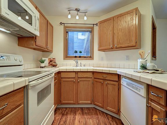 All appliances stay w/ this adorable South Anchorage home. Recently updated w/ laminate flooring, new trim and fresh paint this one is turn key & ready for you. Open kitchen w/ breakfast bar & pantry, washer/dyer in unit, cozy stone surround fireplace, bath w/custom tile surround, covered deck w/mountain views, add'l exterior storage, assigned parking & dues include basic cable! This is the one!