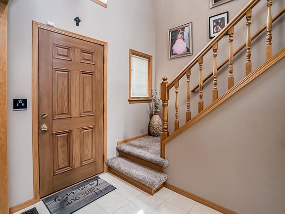 Sensational Stonegate Estates 1 1/2 story home in impeccable condition! 2-story entry with six panel fiberglass door, dormer window above door with wood ledge, new carpet, and newer tile floor! Great formal dining room with triple boxed-out windows, crown molding and chair rail! Amazing living room with quad boxed-out windows, wood and tile faced wood burning fireplace with wood columns and wood panels to ceiling plus a gas starter, can lighting and ceiling fan! Awesome kitchen with Custom Cupboards cabinetry including 2 lazy susans plus 1 upper lazy susan, pantry, eating bar with wood back, full appliances including dishwasher, ceran top range, microwave & refrigerator, box lighting and Porcelain tile floor! Bay window breakfast nook with see-thru fireplace with wood & tile face, Separate m/f laundry room with full cabinetry including folding table and tile floor! Main floor 1/2 bath has a large vanity and a tile floor! Master bedroom with double windows with round top transom above plus an additional window and ceiling fan! Fabulous master bath with corner Jacuzzi tub and corner windows above, separate vanities, linen cabinet, separate shower and toilet room, tile floor and walk-in closet! Bedroom #2 with large closet and ceiling fan! Bedroom #3 with dormer window with wood seat & storage, walk-in closet and ceiling fan! Bedroom #4 with walk-in closet and ceiling fan! Large hall bath with 3' vanity, tub/shower and vinyl floor! Large basement rec room with can lights, two daylight windows and ceiling fan! Bedroom#5 with daylight window and large closet! Basement bath with marble top vanity, linen cabinet, shower and vinyl floor! Great 2 car garage with full sheetrock, opener, walkthrough door to backyard and an additional workshop space! Super new privacy fenced backyard with patio, mature trees and sprinkler system! Updates include zoned Trane HVAC with add-on heat pumps and humidifier, 75 gallon water heater, backup deep cycle marine batterybackup sump pump, radon mitigation system, 50 year IR composition roof, guttering, new exterior paint, electric or gas hookups for both range and dryer and security system!