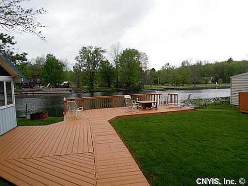 Enjoy WATERFRONT Living on the Oneida River! Quiet Dead End Street, Peaceful, Private Surroundings & Gorgeous Views. Lots of Decking & Docks to enjoy the outdoors & boating. Great Cabana & Outdoor Bar for entertaining. Inside, enjoy Large OPEN Rooms - the living room & dining room bring in the outdoors with large glass doors. 2 Full Bathrooms! Fully Applianced, including Washer & Dryer located conveniently in a Spacious First Floor Utility Room. 70' of Waterfront. Don't miss this opportunity to vacation at home for a great VALUE Price.DIRECTIONS TO PROPERTY: Caughdenoy Road to Black Creek Road to Riverview Road to Ethel Road.