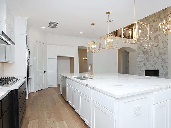 MLS# 9643186 - Built by Highland Homes - Ready Now! ~ Live luxuriously in this 222 model home plan! Painted brick exterior gives this home major curb appeal. As soon as you walk through the double doors, you are welcomed by soaring ceilings throughout. Study is located off the entry- perfect for a home office. Host your own movie nights in the conveniently located entertainment room. Secondary bedroom with full bath is located downstairs. Formal dining area features upgraded gold fixtures & hutch for extra storage. Spacious family room features floor-to-ceiling tiled fireplace and sliding glass doors leading to the covered patio w/ outdoor fireplace! Dream kitchen features huge upgraded quartz island, double ovens, gold pot filler & pendant lighting, additional hutch, and more! Retreat to your primary suite complete with modern freestanding tub. Upstairs features oversized bedrooms & game room. Shutters already included! Make an appointment to tour today!
