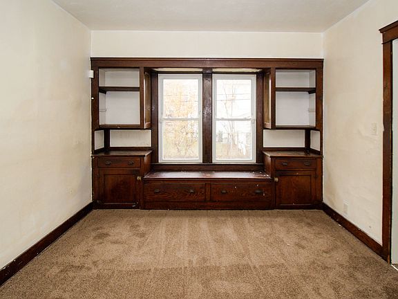 Single family home that offers large bedrooms with tons of space and 2 bathrooms! Nice decorative fireplace in living room with French doors that open up to the dining room that has original built ins with window seat! Large "dorm style" master and a half finished basement with carpeting! This house offers PLENTY of space and AMPLE storage!