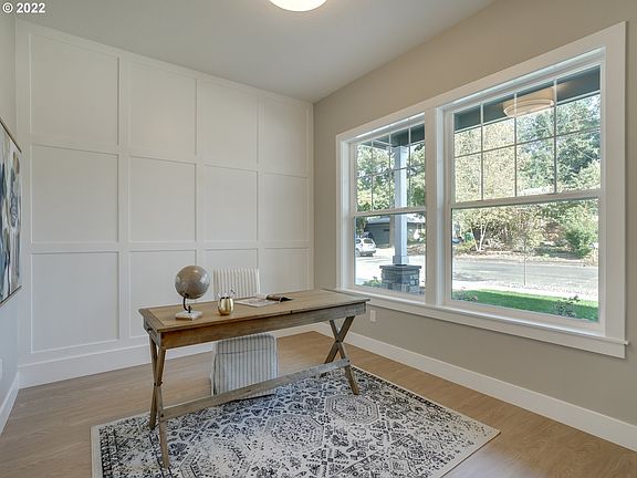 Welcome to your dream home in the heart of Southwest Portland. This beautiful, sustainably-built custom home is a testament to exceptional craftsmanship and attention to detail. No expense has been spared in creating this spacious haven, where every element has been carefully considered to provide the utmost comfort and style. As you step inside, you'll be greeted by wainscoting and 10-foot ceilings, adding an air of elegance and sophistication to the living spaces. The home boasts a roomy primary suite that offers a private sanctuary for relaxation and rejuvenation. With a total of 4 bedrooms, 2 and a half bathrooms, and a full office (that could be used as a 5th bedroom), there is ample space for your family's needs. The home features a rare 2-car garage. Hardwood floors grace the living areas, adding warmth and beauty to the home. Luxurious finishes can be found throughout, reflecting the impeccable taste of the design. The open floor plan allows for seamless flow and effortless entertaining, creating an inviting atmosphere for gatherings with family and friends. The kitchen features ceiling-high cabinets and high-end appliances. Enjoy the covered patio, perfect for outdoor dining or relaxation, and listen to the soothing sounds of the water feature. This home is a testament to quality, sustainability, and thoughtful design. Don't miss this opportunity to own a truly exceptional property in Southwest Portland. Schedule a viewing today and experience the luxury and serenity that awaits you in this magnificent custom home.