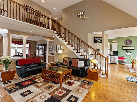 Experience elegance in this stunning Traditional American home located in Carmel's Bramblewood subdivision. With 4,780 square feet, it features a grand two-story foyer leading to an airy great room with a gas fireplace. The main level includes a luxurious primary suite with a fireplace and a spa-like ensuite. The chef's kitchen boasts granite countertops and stainless steel appliances, including a gas range. Enjoy the bright breakfast bay windows and the formal dining room for entertaining. The private rear yard offers a deck and paver patio, while the home includes a convenient office and three-car garage. Enjoy petting the horses that come to the north side fence adjacent to the property.