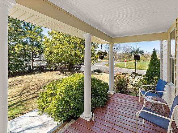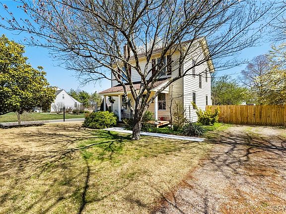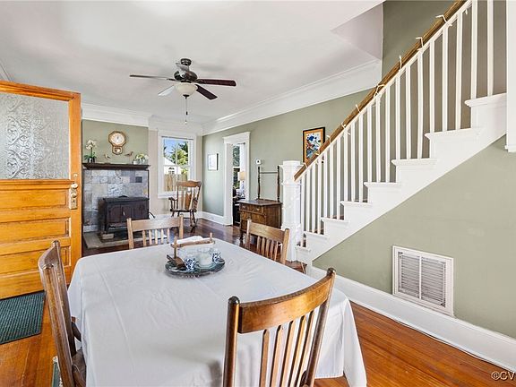 Step into History with this Beautifully Maintained 101-Year-Old Home, Offering Timeless Character and Modern Convenience. A stunning full country porch welcomes you, perfect for sipping coffee and enjoying the peaceful surroundings. inside, gleaming hardwood floors flow through the spacious formal living and dining rooms, where a cozy wood-burning stove with stone details and a classic wood mantle creates a warm, inviting atmosphere. The family room boasts elegant crown molding, ceiling fan and continued hardwood flooring, providing the perfect space to relax and unwind. The kitchen is both stylish and functional, featuring tile countertops, stainless steel stove, an abundance of cabinet space and a charming tile backsplash. A large walk-in pantry doubles as storage closet, ensuring ample room for all your essentials. The adjacent laundry room provides convenient access to powder room and outdoor space. A beautiful wood staircase leads to the upper level, where you'll find three ultra-spacious bedrooms with plush carpeting and oversized closets. There is a gorgeous period stained glass window as you walk upstairs. Satisfy all your storage needs in above attic space as well as detached two-car garage. The private lot offers a serene retreat with plenty of space to enjoy the outdoors. You will love the fruit trees, peach, pear, and plum! There are also blueberry and blackberry bushes, along with a fenced yard. Don't miss your chance to own a piece of history in Henrico! Original dining room currently used as a den.