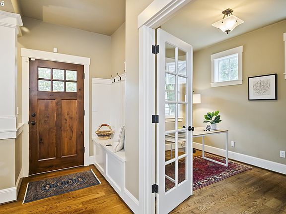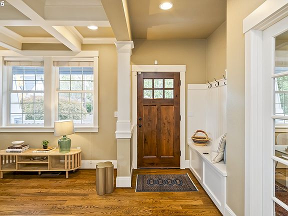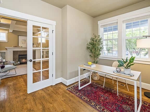 Beautifully crafted home in the heart of St. Johns, designed with care and character in every detail. Step into the light-filled living room with a gas fireplace, crown molding, and coffered ceilings that add timeless elegance. The gourmet kitchen shines with custom maple cabinetry, slab granite counters, stainless steel appliances, and a cozy breakfast nook. Curl up to the second burning fireplace while dinner is being prepared in the great room. Oak hardwoods and 10-foot ceilings flow throughout the main level, connecting to a formal dining room and a private office. Upstairs, the spacious primary suite offers dual sinks, a soaking tub, walk-in shower, and generous walk-in closet. Enjoy indoor-outdoor living with dual covered porches (front + back) and a private backyard w/grapes, herbs and roses. The garage is solidly built w/room for one car or storage for all of the gear. There is a driveway w/room for off-street parking + a fully fenced lot. Tastefully built and perfectly located— just minutes to shops, restaurants, parks, and the Lombard MAX line, with easy access to downtown Portland. Open houses: Twight Friday + Sat/Sunday. Come on by! [Home Energy Score = 5. HES Report at https://rpt.greenbuildingregistry.com/hes/OR10149007]
