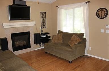 Rare ranch with vaulted ceilings, real hardwood flooring, updated kitchen, 3 bedrooms. Vaulted living room with gas fireplace, and ceiling fan. Vaulted kitchen with stainless appliances, center island, bench, and slider to patio. Vaulted master, walk-in closet, garden tub, and slider to patio. Private backyard with mature trees, concrete patio. Unfinished basement with laundry area, play area, workout area, and storage.