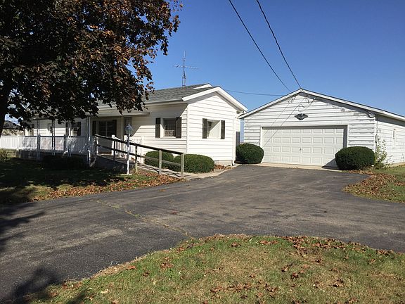 3 bedroom 2 bath home located just outside city limits. 2 car detached garage with additional quonset on property for storage. Newer appliances included. Large covered front porch and nice size backyard.