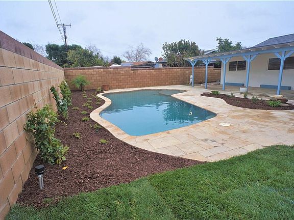 On a Cul-De-Sac, lovely 4 bed, 2 bath, single-level home that has undergone a complete remodel. A family's or entertainers residence. The newly designed home has a very spacious living room/family room, open kitchen and elevated ceiling beams. Enter a warm living room with big bay windows and a welcoming gas fireplace with a mantel decorated with photos of your family. A lovely large island in a custom-built kitchen where all of your family and friends may gather. The formal dining room is visible from the island. Remodeled kitchen with cabinetry, a pantry, a sink and backsplash made entirely of quartz. Lights, a sensor kitchen faucet and stainless steel range, microwave, and dishwasher.The house goes on to have a large family room with a custom entertainment center that has space for a big TV or a game closet and a large picture window that looks out onto the inviting pebble-tec pool that is surrounded by pavers, landscaping, and a covered patio. Even a garden may fit here. There is a walk-in closet with shelving in the master bedroom. A walk-in custom tile shower with a frame-less glass enclosure is included in the master bathroom. There is a sizable, custom-built vanity in the guest bathroom with the custom-tiled tub and shower. The end of the hallway has a linen closet with storage. The home also features Milgard windows that come with energy-saving features. New, high-end appliances, new LED recessed lighting and fans with LED illumination are also present. All schools, including junior high and high school, are accessible walking. Target and a park are also close by. Water,trash and landscaping service are included.