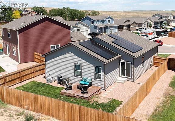 Welcome to this gem in desirable Lorson Ranch! So many upgrades and extras!! Truly one-level living on a cul-de-sac backing to green space! Enter in and see the beautiful and low maintenance LVP flooring. Spacious front room can be used as a dining room or office. Kitchen includes granite, pantry, upgraded gas stove, and counter bar. Open layout with spacious living room that walks out onto low-maintenance deck. See lovely Colorado sunrises and sunsets from the back deck with no neighbors behind you! Large master bedroom includes adjoinng 5-piece bathroom and roomy walk-in-closet. Both bathrooms have granite counters and LVP flooring. AC to keep you cool on hot summer days. Included solar panels reduce electric bills! Whole house water filtration and softening system for clean healthy water. And every single room in the house is wired for data! Come see this lovely home before it's gone!!