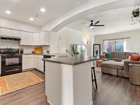 Nestled in the heart of River Valley Village, this beautiful townhome offers an elegant, open-concept living experience. As you step inside, the modern kitchen greets you with a stylish peninsula island, perfect for casual dining or entertaining guests. The adjacent living room is bathed in natural light, streaming in through sliding glass doors that lead to a delightful patio area. This outdoor space is a true extension of the home, featuring ample greenery and room for relaxation or social gatherings.