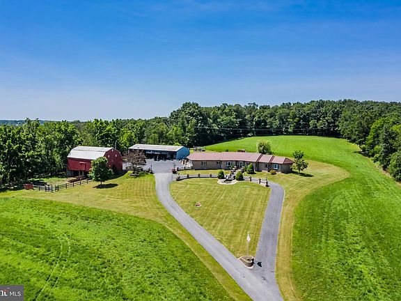 Truly exceptional is the only way to describe this property. An enchanting drive along a long, private lane leads you past open pasture and a gently flowing stream before unveiling a breathtaking setting with panoramic views, a classic red barn, and an all-brick ranch perfectly positioned in complete seclusion. The approach itself feels almost storybook, and leaving the property is only tempting to take in the incredible views once more on the way out. This remarkable estate offers approximately 75 acres of rolling countryside featuring crop fields, pasture, hunting ground, a stream, fishing pond, swimming pool, pavilion picnic area, fruit trees, and a multi-acre fenced garden ideal for serious growers or homesteading. Additional highlights include a barn, workshop, circular driveway, fountain, and the potential for subdivision into additional building lots. The 3-bedroom, 2.5-bath all-brick ranch home showcases handcrafted woodwork created in the on-site workshop, a granite kitchen with solid hardwood cabinetry, spacious living room with fireplace, formal dining room, mudroom with laundry, and a full unfinished basement ready for future expansion. The lower level features a wood stove for efficient supplemental heat, complemented by a new heat pump installed in 2022. Whether you’re searching for a forever home, working farm or ranch, private retreat, or legacy property, this offering delivers space, privacy, and a sense of enchantment rarely found. Private showings only. Please respect the owners’ privacy—access to the property is by scheduled appointment with a licensed agent.