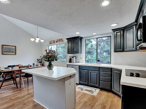 Contemporary in Serene Quail Park! Soaring Vaulted Ceilings w/Beams on Main. Open Kitchen w/Island, Dbl Oven+Plenty of Cabinetry. Light+Bright Living Room w/Gas Firepl+65" Samsung 4K TV Included! Spacious Owner's Suite w/Walk-in Closet+Bath w/Shower. Generous Guest Bedrooms. Lower Level Bonus Rm Perfect for Office/Work-From-Home Space. 2 Car Garage w/Workbench. Tranquil Backyard w/Water Feature+Privacy Hedge. New 96% Eff Furnace+AC. All Appliances Incl! Minutes to Multnomah Village+Gabriel Park!