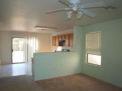 Great starter home has three bedrooms, two bathrooms and great room concept. Great landscaping out back includes a paver patio, lemon/lime tree, grass island and bouganvilleas. Some of the extras in the home are motion lighting outside, a security system, refrigerator, washer and dryer and a security door.