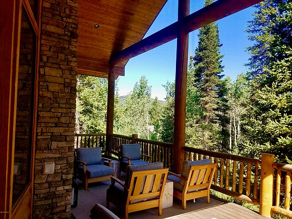 This stunning 5559 SqFt estate on .7 acres is mountain luxury living at its finest. Featuring 7 beds and 4.5 baths there is plenty of room for the entire family and guests. The main floor master offers convenience and privacy and is fully equipped for a private spa day with a steam shower and gorgeous copper tub. Every room has custom designer finishes, from the grand log staircase to the high end kitchen with reclaimed barn wood to the bathrooms with gorgeous fixtures. The main floor features an open living space with a fireplace in the living area, all surrounded by large windows that bring the pristine outdoors right inside. Access the wraparound deck from the first floor when entertaining or to take in the mountain sunset. The finished basement includes a great room and a kitchenette, perfect for storing snacks for family movie night. The detached garage offers plenty of room to store your toys, which is important when you live next to some of the best recreation Utah has to offer.