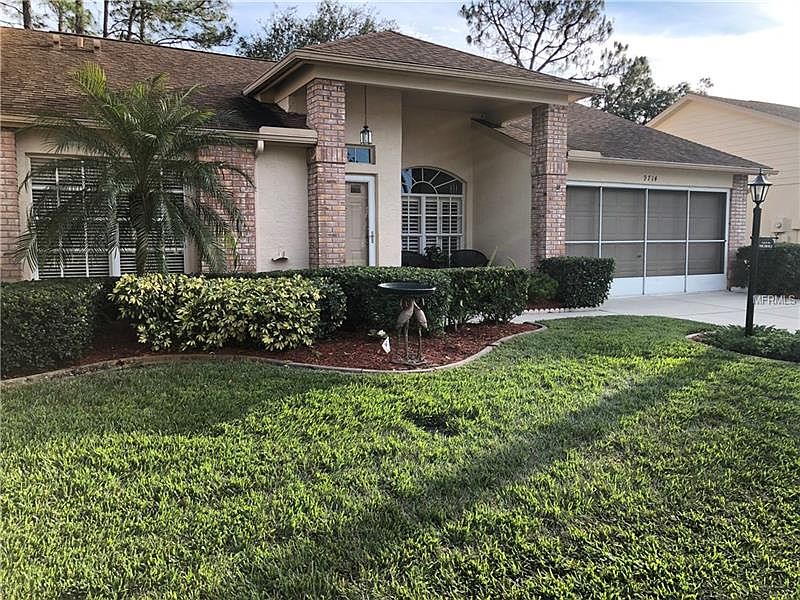Amazing pristine end-unit Villa nestled by the golf course in cozy Royale Oaks Village of Timber Greens. Safe in a non-evacuation zone! Popular two-bedroom two-bath split-plan Magnolia floor plan has beautiful golf course views of the 12th fairway & nature preserve and is a dream come true especially at this price. Enter to an open spacious living & dining room with vaulted ceiling & plantation shutters that extends to an expanded enclosed porch w/convertible windows. The remodeled eat-in kitchen has stainless steel appliances and also opens to the porch & family room with vaulted ceiling, wood-burning fireplace & built-in shelving. Nice carpet throughout w/tile flooring in wet areas and porch. Jacuzzi tub in guest bath. Updated ceiling fans & lighting; new stone counters & kitchen cabinets, A/C, air handler & roof in late 2012. Laundry room was converted to a convenient office. Laundry area with wash basin is in the spacious 2-car garage with lots of built-in storage cabinets. Timber Greens is a fantastic well-managed & maintained community w/solid reserves, low monthly fees, great amenities & popular golf course. Enjoy a drink & delicious meal in the 19th hole restaurant. Take a swim in the gorgeous pool or relax and rejuvenate in the heated spa. Lots of activities will keep you entertained & socializing with new friends in the beautiful clubhouse. Great if you're a full-time resident or "snow-bird!" Take advantage of this opportunity before someone else does! Furnishings are negotiable.