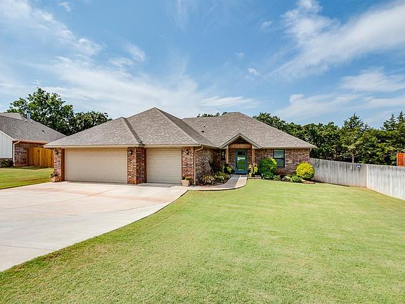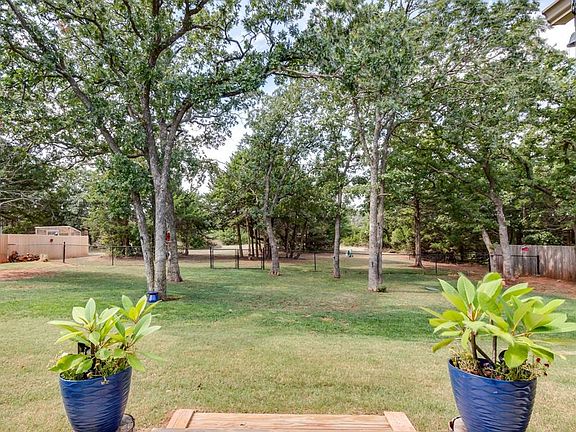 PRICE REDUCED!!! PRISTINE, LUCIOUS and WOODED 1.25 acre lot in Rustic Creek! This lot provides privacy, tranquility, and a natural soothing place to unwind. The split floor plan offers a primary suite which is secluded to one side of the home for ultimate privacy and relaxation. The luxurious bath and generous walk-in closet with custom cabinetry make it picture perfect. The homes layout is ideal with a dedicated study near the entry. Additional 3 bedrooms create perfect accommodations for overnight guests. The spacious living with fireplace opens to the entertainers kitchen featuring an eat-at island and walk-in pantry. Step outside onto the patio overlooking the beautiful wooded lot with stunning views. Enjoy entertaining or simply watching the beautiful Oklahoma sunsets while relaxing with family. Come see for yourself this AMAZING property and make it your home for the holidays!