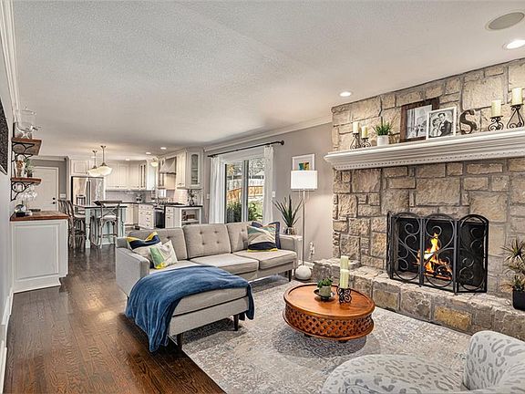 Gorgeous and updated Ranch in Leawood Estates. This spacious 5 bedroom and 3 full bath has many unforgettable features! Gorgeous hardwoods throughout on the main level. Beautiful entry way walks into your living room which opens up to the dining room area with built-ins. Kitchen has new gas range stove, all SS appliances, soapstone countertops, island for extra seating, and extra built-in shelving. Kitchen opens up to the hearth room with fire place creating a great ambiance for entertaining. Walk out your new sliding glass door to your lavishly landscaped yard with patio and fireplace. Large primary suite with newly finished master bath and walk-in closet. Spa like master bath with double vanity and enormous walk-in shower. Two additional bedrooms located on the main level with an updated full bathroom. Lower level was recently finished with a huge rec room, two bedrooms and fully updated bath. Laundry room is located in the lower level. This home has tons of living space with many areas to escape to. Newer upgrades include new windows throughout, new HVAC & AC and two new sump pumps. Fantastic location. Close proximity to parks, shops, restaurants, grocery stores, highway access and much more. This home will not disappoint and is ready for the new owners to move right on in!