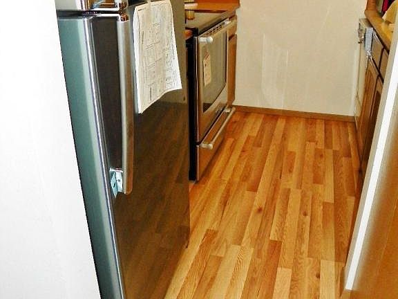 Convenient location! Easy access- close to shopping, restaurants, trails. Secure building for access. New stainless fridge, stove, overhead hood & laminate. Sliding door upgraded to vinyl. Wood fireplace in living room. Flat screen tv & speaker stays with sale. Patio with personal storage unit. Heated detached garage. Basic cable added to dues for $21.50/mo. Only pay small gas & electric bill.