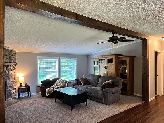 Country home on just over an acre. This home was completely remodeled in 2015. All new windows, flooring, fixtures, electrical, central air added, new septic, and roof. The original walls of this manufactured home were removed and drywalled. Everything has been beautifully done and still looks brand new. There are 3 large bedrooms The master has French doors leading out to a covered porch and its own bathroom with walk in closet. The family room has a cozy wood burning fireplace, the kitchen has a beautiful tile backsplash, and all appliances will stay. Outside is a nice pole barn with concrete floors, a workshop area and is wired for generator hookup. The yard has plenty of room for the kids or animals to play. This home has been very much loved and well taken care of. Call and schedule an appointment to see this cute home and its peaceful location.