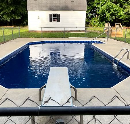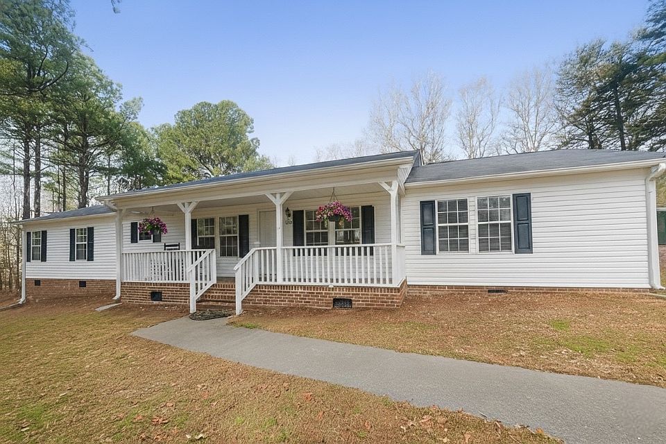 Ranch House built in 1996. Includes a front porch, back deck with pool, detached garage, and carport on a large lot. Landlords are next door.