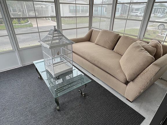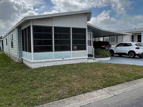 This 2 bedroom, 2 bath mobile home is located in the sought-after 55+ community of Veranda Springs. The vaulted ceilings with a custom coastal paint color bring a Florida feeling inside to you. Enjoy your morning coffee or evening beverage while sitting and chatting with friends and neighbors in the 10 x 16 front screened-in lanai. The kitchen has 8" dark wood laminate, custom cabinets, custom paint, upgraded countertops, and newer appliances and the dining area is adjacent to the kitchen. The master is large enough for your king-size bed and you will enjoy the privacy in your updated attached ensuite. The guest bedroom has an oak-look laminate and a walk-in closet that can be used for additional storage space. Plus a 2 car tandem style driveway with a shed on the back for extra storage. There is a back-screened carport lanai offering an additional outdoor living area. With the lower lot rent of approximately $600 a month, you will enjoy all the community amenities outlined below. It is a small price to pay for a year-round or seasonal home. Veranda Springs is a 55+ pet-friendly community conveniently located off I-75 between Tampa and Ellenton near the Ellenton Outlets in Parrish, FL on Route 301. The park offers a clubhouse, swimming pool, fitness center, tennis courts, fishing, shuffleboard, billiards, library, and game/craft rooms. This beautiful community is perfect for those looking to get the most out of the Florida lifestyle. Start looking in the Veranda Springs community to get the dream retirement you deserve! All listing information is deemed reliable but not guaranteed and should be independently verified through personal inspection by appropriate professionals. Integrity Mobile Home Sales cannot guarantee or warrant the accuracy of this information, measurements, or condition of any property. Measurements are approximate. Lot rent is subject to change.