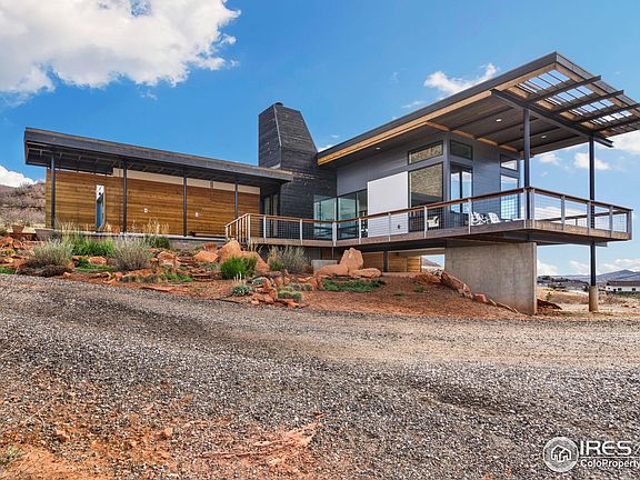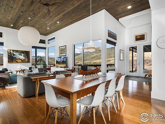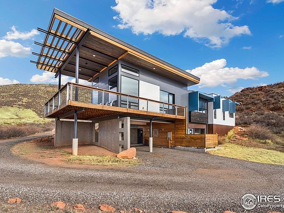 Welcome to this exquisite custom home, where contemporary design meets Colorado's natural beauty. Nestled in the scenic foothills, this thoughtfully crafted home showcases exceptional attention to detail and a seamless blend of style and functionality. Inside, you'll find bright, open living spaces bathed in natural light, thanks to oversized windows that perfectly frame the mountain views. The beautifully designed kitchen features sleek quartz countertops and flows effortlessly into the main living area-ideal for entertaining or quiet evenings at home. Unwind in the living room while soaking in panoramic views, or step outside to the wraparound deck to enjoy Colorado's famous sunsets and watch the local elk herd wander by. The spacious primary suite offers a private retreat with a modern, luxurious en suite bath. Two additional bedrooms across the hall provide flexibility for guests, an office, or creative space, and share a well-appointed full bathroom. Located in the gated community of Buckhorn Ranch, this home offers peace of mind and privacy in an unmatched setting. This home is truly one of a kind. Come experience it for yourself!