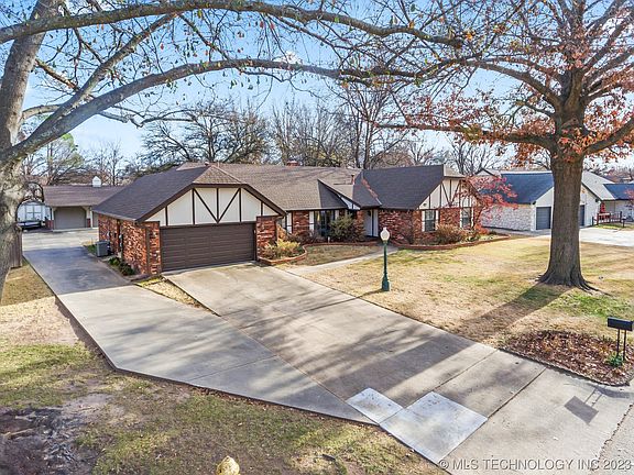 Beautiful home on almost 1/2 acre lot in Jenks Schools. This 4 bed, 2.5 bath home boasts a 50-year roof, reinforced RV driveway/parking, and a separate building at the rear with a shop, and 3rd garage with an EV charging point. This spacious home has a large eat-in kitchen, updated master bath with wheelchair access, formal living, den with fireplace - large split plan 4th bedroom has 2 closets and would make a great in-law/teenager suite with access to 1/2 bath. Quiet tree-lined neighborhood with easy access to turnpike, groceries, restaurants, and all south Tulsa has to offer. Seller offering $5k carpet allowance/closing costs with acceptable offer, ask your realtor about buy-downs and save on your payments!