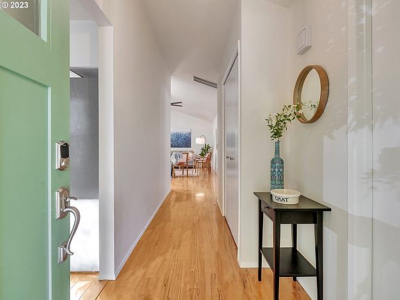 This is a must see! Come in and appreciate this delightful single level house with a spacious floor plan and 2 car garage. As soon as you enter you know you are home?Hang up your coat, kick off your shoes and take in the beautiful, timeless floors throughout the entire house. With vaulted ceilings and skylights there is an abundance of natural light. The living room has so many options for furniture placement, make it large for lots of guests or pull it in for a cozier feel. The kitchen with stainless steel appliances includes a breakfast nook, its own covered porch, an eat at peninsula, and lots of counter space to cook up a feast. The dining room opens to a private, fully fenced, flat backyard where you'll find a large new deck, garden beds, and room to play, all of this and a newly seeded lawn ready to grow. With 3 bedrooms and 2 bathrooms off of a hallway, there is a feeling of privacy. The primary bedroom is a retreat overlooking the back yard, it has its own bathroom and walk in closet. Newer roof, fresh interior paint, and updated bathrooms make this home move in ready. All of this on a private cul-de-sac near Woods Memorial Natural Area with a fabulous trail system offering 32 acres of adventure. Convenient to downtown, Multnomah Village, freeways, public transportation, schools, and shopping. You can have it all! [Home Energy Score = 4. HES Report at https://rpt.greenbuildingregistry.com/hes/OR10221637]
