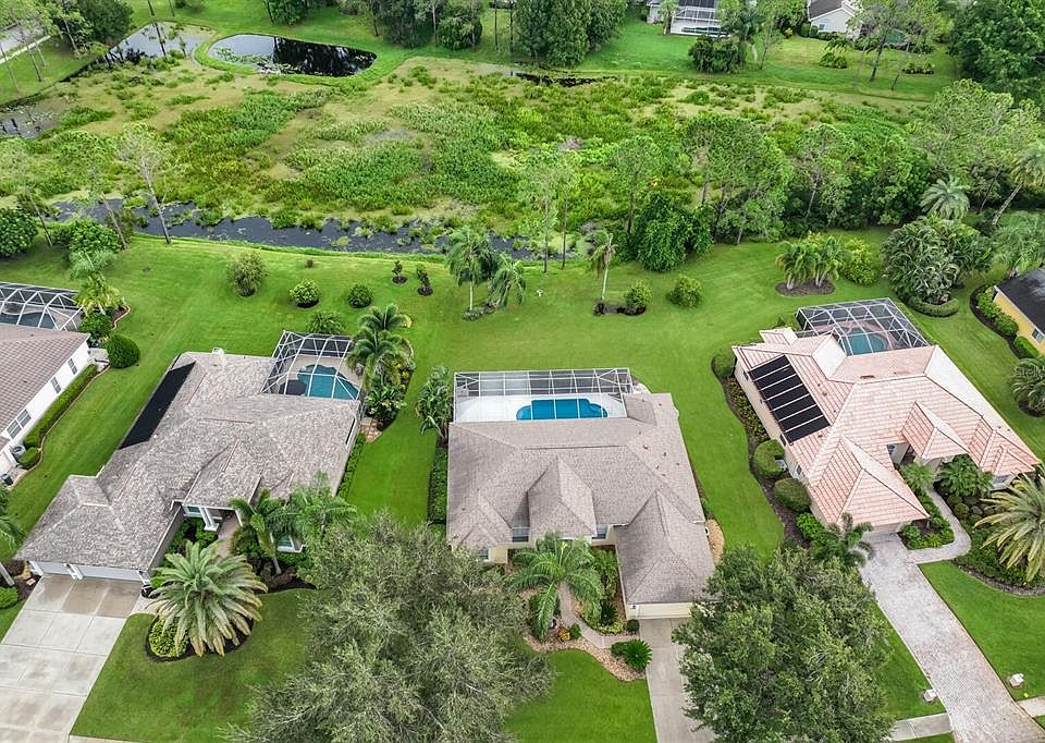 Relish a tranquil lifestyle in this extensively updated residence situated on .31 acres of picturesque preserve views on a quiet tree-lined street in sought-after River Club golf community. Numerous updates were made in 2022 to the open and freshly painted three bedroom, 3 full bath floorplan that effortlessly flows from room to room with abundant natural lighting. Double entry doors greet visitors into the great room, where disappearing pocket sliding doors seamlessly transition to the expansively spacious and refinished lanai with an inviting pool, separate outdoor storage closet, direct access to the pool bath, and pre-plumbed for an outdoor kitchen. Just off the great room and separate dining room is the recently remodeled kitchen featuring all new cabinetry, stainless steel appliances, granite counters, tile backsplash, recessed lighting, a pantry, and a light-filled dinette area with sublimely serene views. The split layout grants separate domains with the two guest bedrooms residing on one side, with one offering an ensuite full bath, while the other guest suite is just off the home’s third full bath with a new vanity, luxury vinyl flooring and recessed lighting. Situated on an opposing wing, the owner’s suite mimics the guest bedrooms freshly painted and new carpeted setting, further enhanced with a walk-in closet, direct lanai access, and an updated bath with quartz counters, refurbished cabinets, recessed lighting, a soaking tub, walk-in shower and two separate vanity sink stations. An accommodating den with shutters and luxury vinyl flooring is ideal for tending to responsibilities as a study, hobby area or office. Rounding out the story of this spectacular gem is a laundry room with new washer and dryer, cabinetry and utility sink, a two-car garage with newly completed epoxy flooring, hot water heater replaced in 2020 and a roof replacement in 2018. You will enjoy peace of mind in a deed-restricted non-mandatory membership championship golfing community with no CDD fees and low HOA fees. River Club is conveniently located about a mile east of I-75 and just minutes from shopping, restaurants and entertainment in Lakewood Ranch and UTC.